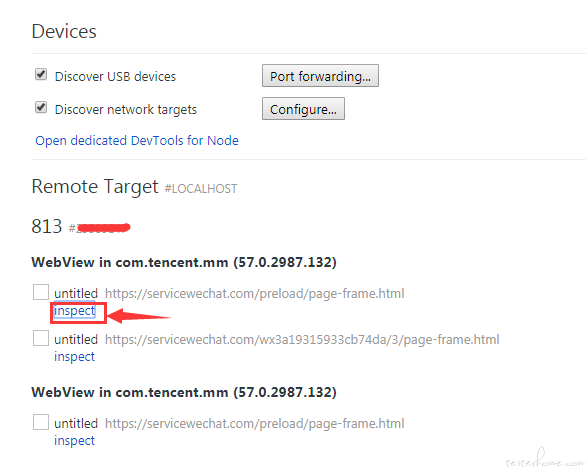 进入任意小程序,以【X东】为例,在Chrome浏览器访问chrome://inspect/#devices